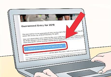 Enter the drawing for a chance to secure a spot at the race. Between mid-January and mid-February, apply for the drawing through the New York Road Runner website. The drawing is at the end of February. Though this is the easiest way to secure a spot, it is not guaranteed. In 2017, over 98,000 hopeful runners applied for the drawing and only 16,000 were accepted (a 16.5% rate).