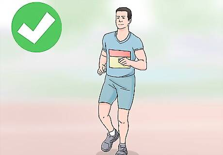 Bring only what you need to the race. It is important to not be weighed down with unnecessary baggage. Make sure your phone is secure and not in your way. Some essentials include your photo ID, some cash, and a small snack.