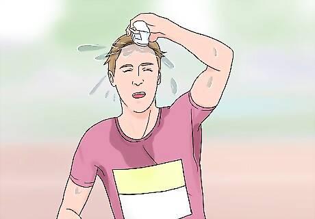 Stay hydrated along the marathon route. Slow down, but don’t stop, at aid stations. Stopping will shorten your muscles and cause cramping. Squeeze the cups to avoid spilling. Keep your core cool by dumping some water on your head and neck during the race.