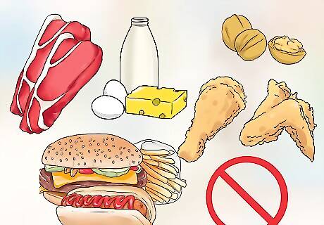 Consume simple meals in the days leading up to the race. Cut foods like red meat, nuts, dairy, fried food, and roughage out of your diet the day before the marathon. Also try to avoid high fiber foods. Do not try any new foods in the week leading up to the marathon.
