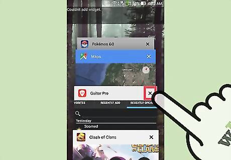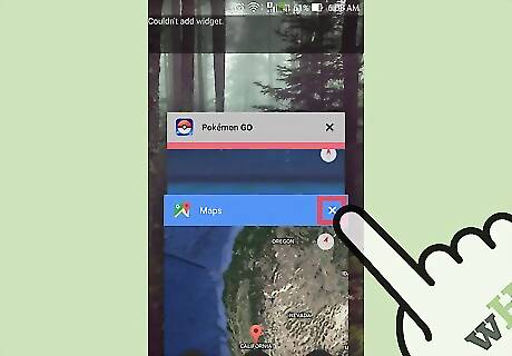 Close the apps you aren't using. Apps continue to use power even if you are not using them if they remain open. When playing Pokémon GO, close any apps you aren't using or frequently returning to. To do this: On an iPhone, double tap the home screen button. Swipe upwards on any apps that you aren't using. On an Android, go to Recent Applications. From there, tap and hold any apps you don't want open. Swipe to the right to close the app.