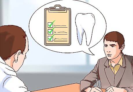 Try to obtain dental insurance. Many employers these days offer dental insurance as part of a comprehensive benefits package. If you do not currently have a job that provides dental insurance, you might want to consider trying to find a position that offers such benefits. Even some part-time jobs now offer dental coverage. If you do not have dental insurance through your employer, you can purchase a stand alone dental insurance package. Do some research on the Affordable Care Act and what it means for you. Understand your plan. If you have insurance, make sure you understand which treatments are covered and which are not. You should also make sure to know how much your co-pay is for each procedure. If the insurance is through your employer, you can ask your Human Resources representative to explain your benefits. If you have a stand alone policy, you can call the customer service center for your provider and ask for clarification on any questions.