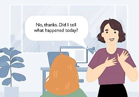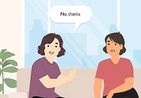 Say no and quickly change the subject. Again, this works better when you want to turn something down. Changing the subject will not only give little importance to your rejection, but also to the action itself. For example, if someone offers you a cigarette, you can say “No, thanks. Did I tell what happened today?” or “No thanks, what are you doing tonight?” By starting a brand new conversation that doesn't involve cigarettes, both your friend's smoking and your choice not to smoke won't look like a big deal.