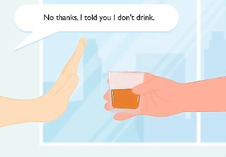 Repeat yourself. Sometimes the situation might become more critical than you expected. Your friend might be pushing you even if you've already said “No, thanks." If the offer becomes insistent, you'll have to make it clear that that is not what you want to do. Saying no again and more firmly is the best thing you can do at this stage. For example: “No thanks, I told you I don't drink." Even in this case, rudeness is not the best way to go. However, make the tone of your voice firm and look at your friend straight in the eye to make your message clearer.