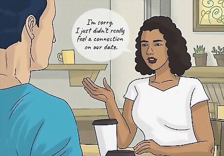 Tell him sooner rather than later. Once you know that you're not into a guy, you should let him know. The longer you wait to tell him you don't want to go out again, the more difficult it will become. If you've only been out on a date or two, it's fine to tell him you're not interested in a text message. If you know you're not interested at the end of your first date, go ahead and let him know. Be confident even if you let him down at the end of your first date. It can feel difficult to say no in person, but it’s important to do. EXPERT TIP Sirvart Mesrobian, PsyD Sirvart Mesrobian, PsyD Clinical Psychologist Dr. Sirvart Mesrobian is a Clinical Psychologist based in West Los Angeles and Glendale, California. With over nine years of professional and research experience, Dr. Mesrobian specializes in individual, family, and couples treatment for young adults and adults. Dr. Mesrobian provides Cognitive Behavioral Therapy, motivational interviewing, trauma-focused treatments, and other services. She earned a Master's in Psychology and a Doctorate of Clinical Psychology from Alliant International University. Sirvart Mesrobian, PsyD Sirvart Mesrobian, PsyD Clinical Psychologist Being assertive is also important when saying no. It’s part of being confident without being aggressive. Understand why you said no to someone, and how it helps you stand up for yourself. Your emotions and self-care are not something you should be apologetic for.