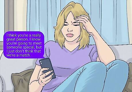 Stop communicating with him on the dating app. Even casually staying in touch can be confusing for him, and he could feel like you’re giving him mixed signals. He may have unspoken expectations that you’ll eventually “come around” and take any ambiguity as an excuse to keep messaging you. If you’re direct, he’ll likely take the hint and move on. Try to avoid excuses like “I’m not ready yet” or “Maybe another time”; they’ll just prolong the rejection. Dating coach Julianne Cantarella’s suggestions include “I think you're a really great person. I know you're going to meet someone special, but I just don't think that we're a match.” She mentions “keeping it very light and authentic.” Rejecting someone on a dating app isn’t an excuse for them to act abusively toward you. If you feel you’re being harassed, block the user and report them to the dating app platform. If you have serious concerns, take screenshots of any relevant messages before deleting them.