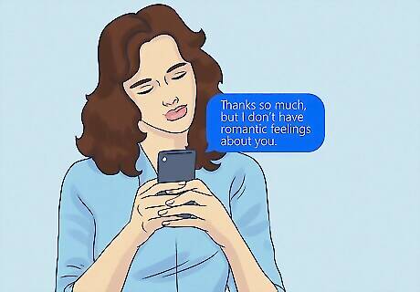 Use proper text etiquette. If you are too informal when you're telling a guy who asked you out that you're not interested, you can come across as rude. Even if you normally text or type in a very casual manner, try to be a bit more formal in your rejection. For instance, include complete sentences and words instead of fragments and texting slang. Instead of “Thx, but I just don’t see u like that,” say, “Thanks so much, but I don’t have romantic feelings about you.”