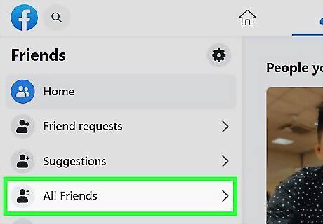 Click Friends. It's in the panel on the left side of the page next to an icon of two profile portraits. You'll see a list of people who aren't currently your friend, but are friends with one of your friends. You can browse this list or continue through the method to find specific friends.