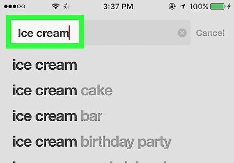 Type your search keywords. This should be something that describes the pin you’re looking for. For example, type “ice cream” if you’re looking for an ice cream-related pin.