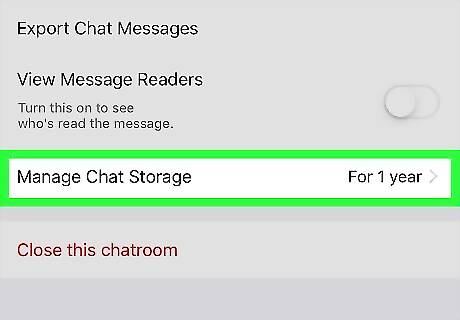 Tap Manage Chat Storage. You'll see this above Close this chat room.