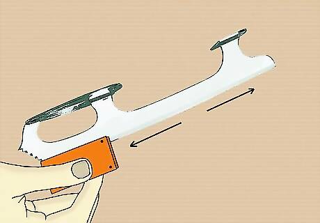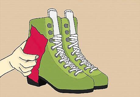 Keep skates dry after use. As soon as you step off the ice to take off your skates, use an old towel to wipe the water from the boots and blades. Put a "soaker" over the blade to protect it. This will ensure that your skates last.