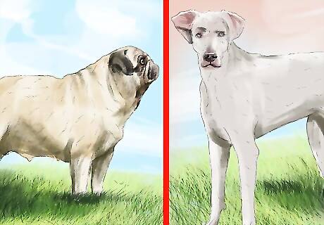 Avoid harmful breeding practices. Many pedigreed dogs—especially those bred to be shown and to match the rigorous breed requirements established by specific show organizations or kennel clubs, including the World Canine Organization. Certain breeds—such as pugs and weimaraners—have been bred to match physical standards that leave the dogs with serious health problems in their adulthood. If you are breeding pedigreed animals together, make sure that the dogs’ offspring will still have functional bodies and be able to live comfortable lives. Pugs have been bred to have large, bulging eyes, and they often suffer serious eye problems and eventual blindness. Weimaraners are bred to have broad, deep chests, but overbreeding for this feature often results in dogs with life-threatening gastric and intestinal conditions.