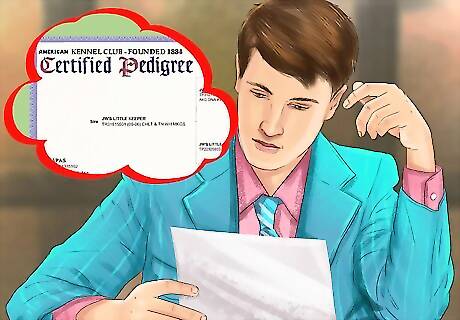 Ask to see the male dog’s pedigree. This is a standard step when breeding two pedigreed dogs together, but one that cannot be overlooked. A pedigree will show the dog’s siblings, parents, grandparents, and in some cases, great-grandparents. For breeders of pedigreed dogs, it’s important to see this document, as it will indicate the legitimacy of a breeder’s claim to their dog’s pedigree, and point out any genetic incompatibilities between the two dogs. In the United States, in order for pedigreed puppies to be registered with the AKC, they must be birthed by a pedigreed sire (father) and dam (mother). AKC registration maintains records of pedigreed dogs and their offspring.