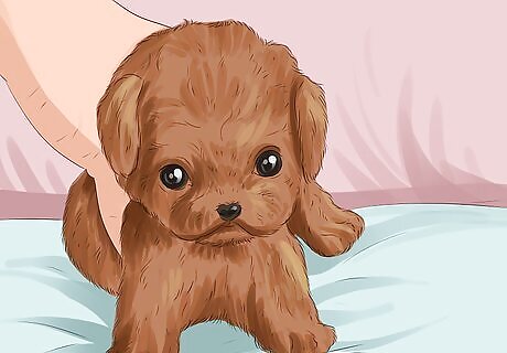 Observe the area where the animals are kept. When visiting your potential pet, take stock of the area where he is being housed. Whether you're going through a rescue or breeder, you want to make sure conditions are clean. A dog or puppy kept in unsanitary conditions may be at risk for health problems. The area should be relatively clean. If you're looking at a litter of young puppies, it's understandable if there are a few stray droppings. Puppies are not born house trained and the accidents may have just occurred. However, if the floor is covered in droppings, dirt, and other debris, this is not a clean environment. The poodle or poodles should be clean as well. Their fur should not be covered in food or droppings. Their coats should be clean and un-matted. They should also look relatively healthy. Poodles, puppies especially, should not have a bony appearance. However, there is one exception — if you're going through a rescue and a dog has just come in, he may still show some signs of neglect such as an emaciated appearance. If animals are being kept in poor conditions, this is a bad sign. If not cared for properly, dogs can develop health conditions, like fleas or ringworm, as well as behavioral problems. You also do not want to give your money to an establishment that is abusing their animals.