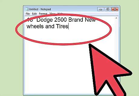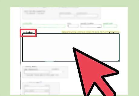 Write the body of your Craigslist post. Use short paragraphs within your post. Short paragraphs that consist of 2 or 3 sentences may be easier to read and look more appealing to buyers than long, block-style paragraphs. Give a brief history of the auto parts; such as where they came from, how long you have had them, and why you are selling them. This will help gain the trust of your potential buyers. Provide honest information about your auto parts. Buyers may not follow through with the sale if they arrive to look at the auto parts and see that components are broken or missing or that the information you provided was misleading. Include as many details as you can about your auto parts in the posting. This may prevent potential buyers from making additional inquiries if you do not provide enough information, such as the year or model of the auto part.