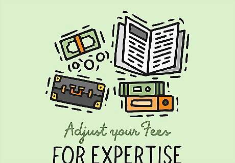 Adjust your fees for expertise. If you can advertise that you are a forerunner of your industry, you can charge more. The following are good indicators that you can raise your rates slightly: You have written a book. In this case, you have taken the time to evaluate the industry and provide professional opinions. This makes you both a teacher and an expert. People will pay more money to have a consultant who is an author. You have been consulting in some capacity for years. If you are starting a new consulting business, but you can prove that you have completed projects for 5 to 10 years, you can place yourself on the high end of the fee spectrum. You have moved to a new area. If you have moved from the suburbs or a rural setting to an urban location, increase your rates by around 25 percent. If you are moving away from an urban location, reduce your rates by around 25 percent, even if you are an expert. Your rate is based on cost of living as well as expertise. You have a number of big name clients. If you do not have a non-disclosure agreement, then advertise the large contracts that you work with. Potential clients will assume that you are worth more if you are chosen by companies they recognize and respect.