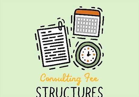 Examine different consulting fee structures. You can price by the hour, the day, by project or with a retainer. Most beginning consultants use a daily rate or hourly rate structure. If you don't have a package of services set up, this may be the best way to start until you get a better idea of what your clients will want. IT consultants and social media consultants usually charge by the hour. Other consultants use a project-based rate. This requires you to know the details of the project very well and have a good understanding of your own efficiency. Marketing, public relations, web design and graphic design often charge by the project. If you have to supply something and it isn't heavily dependent on other parties, this can be your best option; however, there are some risks to doing this. If the project gets delayed by the company, or they ask to completely redo it, you can find yourself with a low hourly rate or being unable to bill. Some professionals, such as lawyers, CPA and financial consultants keep a retainer. They project an hourly rate and how many hours the project will take and ask the client to pay in advance. This is an excellent way to guard against potential non-payment; however, a retainer is hard to sell in some industries like writing, marketing and customer service.