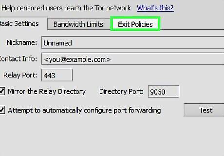 Choose the "Exit Policies" tab. Verify that all checkboxes are unchecked. Click the "OK" button.