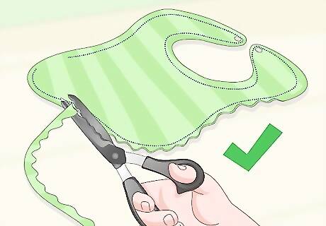 Cut the fabric and sew it according to your pattern. Use standard shears or scissors to cut the oilcloth according to the pattern you chose. Follow the instructions for stitching it using your sewing machine. Because oilcloth is so thick and sturdy, avoid sewing it by hand.