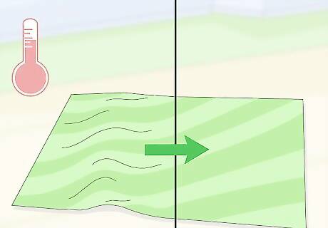 Lay out the oilcloth for a few hours to remove the wrinkles. If your oilcloth was folded or came in a box, it will be creased when you lay lay it flat. To remove the wrinkles without damaging the oilcloth, lay it out for a few hours in a warm room. The wrinkles should disappear once the fabric warms a little. If it's sunny and warm outside, you can lay the oilcloth outdoors. Don't use an iron to smooth the oilcloth or you could damage the fabric.