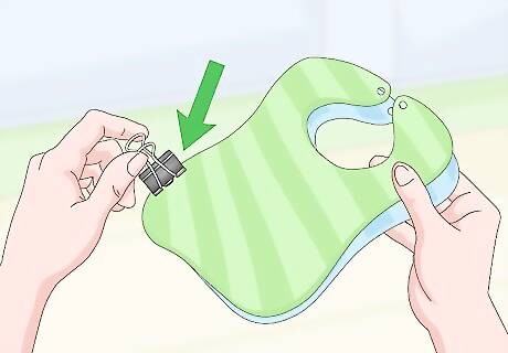 Use clips when joining layers of oilcloth. If your pattern calls for stitching layers of oilcloth together, it's helpful to hold them in place. Use fabric clips, paperclips, binder clips, or clothespins to prevent the fabric from moving as you sew. Avoid using pins because these will poke holes in the fabric. The holes will make the fabric more likely to tear and will compromise its waterproof quality.