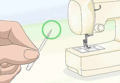 Select a sharp size 14 or 16 needle. You'll need to use very sharp needles to punch through the tough oilcloth. Use a size 14 or 16 needle so it can withstand the sturdy fabric. If you use weaker needles, they may bend or snap. You can also check the fabric store for needles designed for sewing denim. These should be strong enough to work with oilcloth.