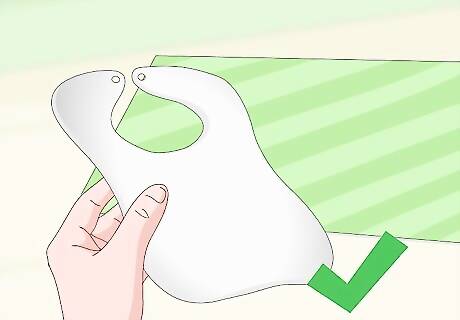 Choose a pattern for your oilcloth. Baby items such as bibs, mess mats, and diaper bags are popular projects to make with oilcloth. You can also find patterns at fabric stores or online for common kitchen items such as aprons, place mats, shelf liners, and tablecloths. For other oilcloth items around the house, make: Book covers Pen or crayon cases Outdoor throw pillows Lunch sacks Shopping cart seat covers