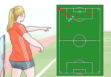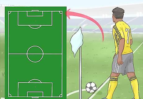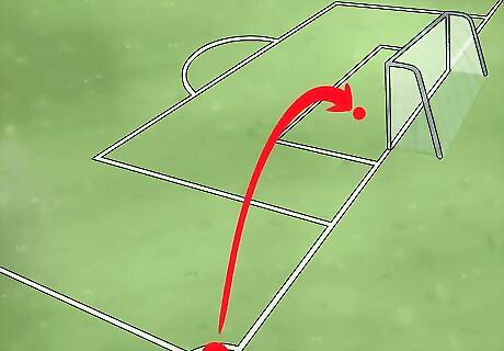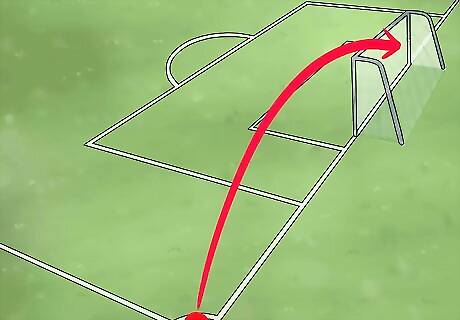 Make a run to the edge of the box. Signal the play to your team so an excellent distance shooter can position himself outside the penalty box. Kick the ball to the edge of the penalty box while your teammate runs forward and makes a shot on goal at long range. You must be a skilled and powerful crosser to get a goal from this corner. Discuss it in advance, and make sure the shooter knows to act defensively when appropriate. Losing possession from this position could be disastrous.