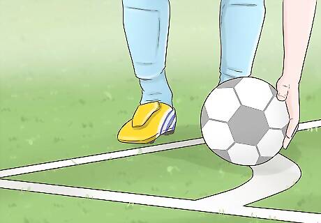 Place the ball in the corner arc. The attacking team places the ball inside the round mark on the corner of the field. Choose the corner closest to the spot where the ball left the field. You may place the ball on the line of this corner mark. Choose a spot where you can approach it easily, without the flag getting in the way.