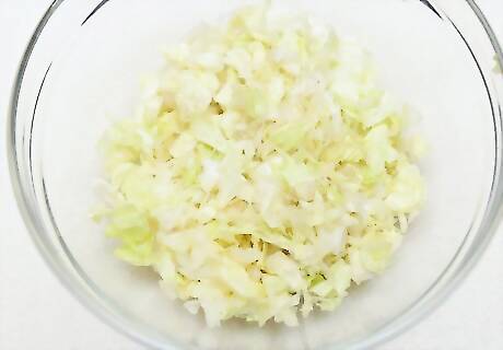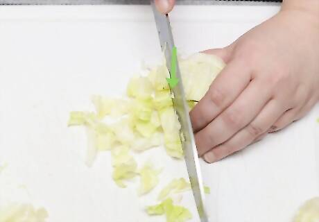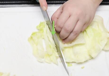 Create thin strips. Use a sharp chef's knife to cut through the lettuce in close rows, moving from left to right across the board. You now have a pile of lettuce strips.
