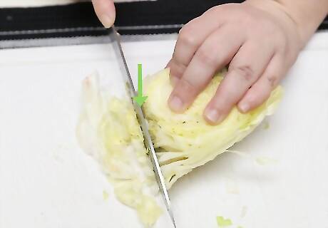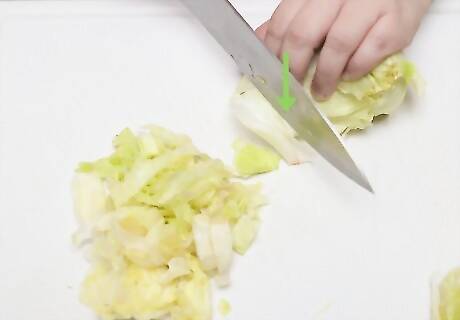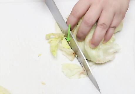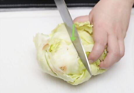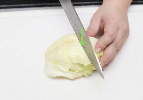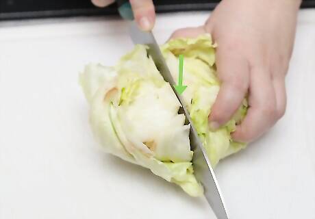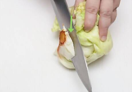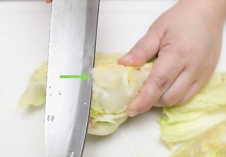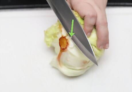 Cut to the core. Continue slicing until you reach the pale center of the head of lettuce. Stop slicing when you reach the core of the lettuce.