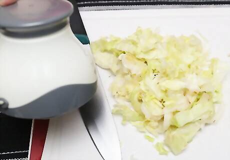 Feed the lettuce into the processor. Place the stack of lettuce leaves into the feed tube or spout, with the blender or food processor on low speed. Gradually feed the leaves into the food processor until they have all been shredded.