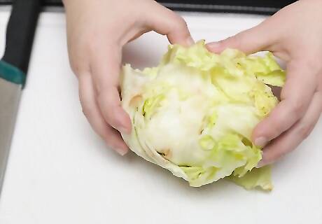 Remove the core from the head of lettuce. Lay the head of lettuce on its side and slice the top of the lettuce from the core, using a sharp chef's knife. Slice off any remaining green leaves, then remove the pale center of the lettuce and discard it.