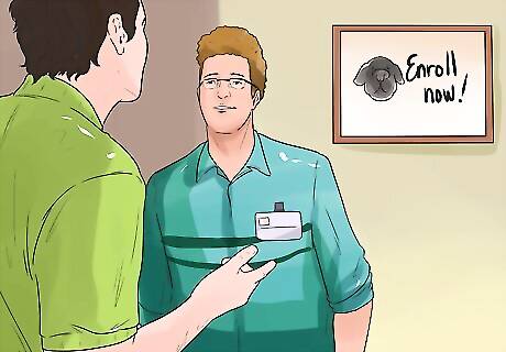 Seek help if your dog’s behavior does not improve. Some dogs may not respond well to socialization efforts. If your dog does not improve with continued socialization efforts, seek the help of an animal behaviorist or certified professional dog trainer. Ask your veterinarian for a referral if you are not sure where to look. Consider group training or one-on-one training for your dog. Ongoing obedience training is a great way to get your dog to behave around other animals and people. Taking your dog to group obedience classes can also help to introduce him to new animals and people, but many dog trainers offer one-on-one sessions as well.