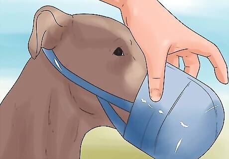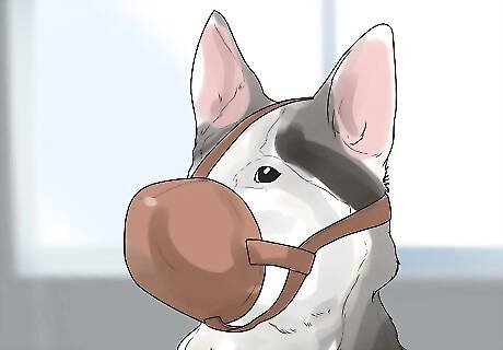Use a muzzle if your dog bites. If your dog is aggressive and prone to biting, you should use a muzzle whenever new people or animals will be present. This will help prevent your dog from seriously injuring or even killing another animal or person. Muzzles are also great training tools because they allow your dog to experience new people and animals in a low-risk way.
