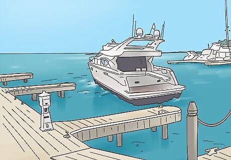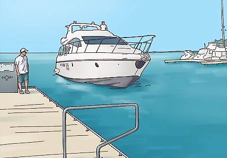 Leave the dock. Think about your limits and don’t try to drive away in a yacht without the required crew members. Depending on the size of the yacht, it may require no crew members or several crew members. A 100 foot (30.5 m) yacht can be driven alone with the help of a dock hand to untie the yacht from the dock and also help when you return to the dock.
