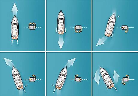 Learn about cruising. When you think you can control the boat, try cruising in a straight line. Use partial throttle, equally on both engines, to cruise forward in a straight line. Use the steering wheel while cruising for directional control. If something gets in your way just reduce the throttles to slow down. If you need to stop quicker, reverse both engines equally just enough to stop forward motion. This is where you may need to go to differential engines to hold position.