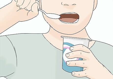Feed your child soft, bland foods while they recover. This will help to prevent irritation to your child's sores and promote healing. Avoid giving your child any foods that are spicy, acidic, salty, or hard while their sores are healing. Instead, offer your child things like: Applesauce Cottage cheese Macaroni and cheese Scrambled eggs Cream-based soups Yogurt Ice cream