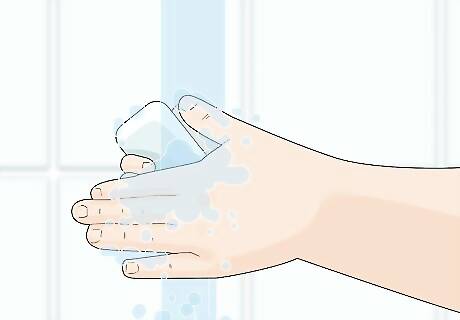 Teach your child to wash their hands with soap and water. Reduce exposure to the infections that cause mouth sores by teaching good hand washing skills. Have your child lather their hands with soap for 20 seconds before rinsing after using the bathroom and before eating. The “Happy Birthday” song lasts for approximately 20 seconds, so you can ask your toddler to sing this quietly when they wash their hands so they know when it's time to rinse. Encourage your child to wash their hands independently by placing a stool near the sink to help them reach everything on their own.