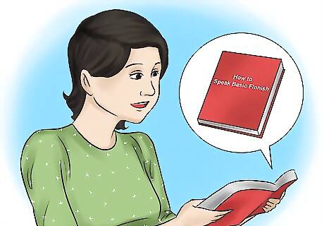 Invest in software and books on the Finnish language. It can be helpful to consult secondary sources when trying to learn another language, even if you're just trying to master the basics. Consider purchasing software or a book or two on Finnish language to help with the process. Many software packages can be purchased online that help you learn Finnish through online lessons, tests, quizzes, and activities. Make sure you read reviews of any software you see before making a final purchase as not some packages may be better than others. See how useful other users found the programs before making any purchases. Also, there are some language learning tutorials offered for free download but make sure you do research on such packages to make sure they're not scams containing viruses or malware. If you're struggling with pronunciation, many sites allow you to listen to basic words and phrases, including many of the phrases listed above, and might even provide tips and tricks to improve pronunciation. Books on Finnish language can be purchased online through sites like Amazon or even at some college book stores. Rosetta Stone, one of the most well known software tutorials for learning a second language, unfortunately does not currently sell a package on Finnish. However, they do take requests for adding new languages. Keep your eyes out as they may eventually add Finnish.