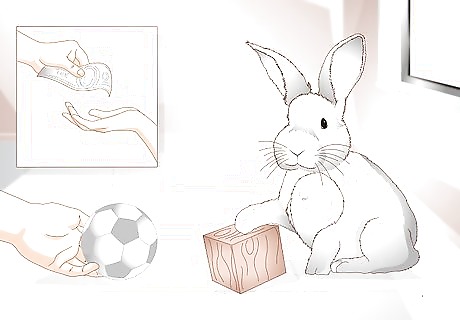 Purchase toys that keep your rabbit entertained. Rabbits also need a variety of toys to stay engaged and happy. You should strive to get toys of a variety of texture. Just make sure any toys are made from non-toxic material, as rabbits are prone to chew. Things like wooden boxes, balls, parrot toys, and stainless steel measuring cups will entertain a rabbit for a long time. You can purchase these items at a pet store or supermarket. Rotate toys every few days. Rabbits will get bored with the same toys after a while. Every couple of days, switch out the toys you have and replace them with new ones.