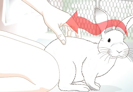 Massage your rabbit. A massage is a great way to spoil your rabbit. It can help him relax and bond with you. It will also make him feel comfortable, promoting circulation and increasing the range of the joints in his muscles. Slowly run your fingers over your rabbit's nose, and then move them over his head and body. Work your way all the way down to his tail. Make circling motions with your fingers over your rabbit's cheeks, as well as between his ears. Not all rabbits like being handled extensively. If you just got your rabbit, it may take him some time to get comfortable with your touch. You may want to wait to massage your rabbit until he comes to you on his own. If your rabbit growls or clicks his teeth, you should stop massaging him.