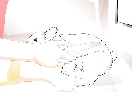 Groom your rabbit. Grooming your rabbit can help strengthen the bond between you and your pet. Not only can brushing help you feel close to your rabbit, it can also prevent issues like fur balls. Brush your rabbit about every 3 days. When your rabbit is shedding, brush him slightly more. You can use a slicker brush, which you can buy at most pet stores, to brush your rabbit. Brush your rabbit going in the direction of his fur. Use slow, gentle motions so your rabbit enjoys the experience.