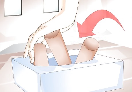 Make toys for your rabbit. You can also make toys for your rabbit. With old material from your home, you can spoil your rabbit with a variety of homemade toys. Rabbits are big fans of materials like wood and cardboard, so reusing old materials can really spoil your rabbit. Rabbits love disassembling and chewing. Take a few old toilet paper roles and place them in an empty tissue box. Your rabbit will love removing all the toilet paper roles and then gnawing on the cardboard. Weave leafy greens into a slinky. Then, hang the slinky from somewhere in your home or in your rabbit's cage. Your rabbit will love munching on the greens while chewing on the slinky. Make sure to supervise your rabbit when he's playing with this toy, however, to make sure he doesn't get tangled or caught. Buy a few wooden boxes from a craft store, as well as a wooden board. Make sure the boxes have lids. Using non-toxic elmer's glue, glue the boxes onto the board. Put some vegetables, treats, or fruits inside the boxes. Allow your rabbit to rummage through the boxes in search of the treats.