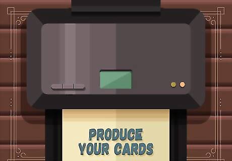 Produce your cards. The materials you use to produce your cards will be variable depending on the type of cards you are creating. You can find a variety of materials for making cards in craft stores, including thick cardstock and delicate rice papers. The kind of paper you needs will depend on the type and number of cards you intend to produce. Higher material costs likely mean higher prices, so keep that in mind as you study different kinds of cardstock. You can use additional materials like ribbons or buttons to create more elaborate cards, but this is only a good idea for custom-made cards. If you plan on mass producing, stick to card designs that can be printed, and don't require additional materials. Don't forget to include envelopes with your cards. You can buy them at most card stores, or make your own.. Most important is to make sure that your card will fit in the envelope. Depending on the theme or style or your cards, envelopes are another opportunity for creative design, so don't be afraid to add an extra design. Learn some basic graphic design programs. Even if your artistic talents are not digital, being able to manipulate your work in a program like Photoshop can give you more design flexibility. Since you will be mass-producing your work, you will need also digital files in addition to the original pieces. If you intend to mass-produce, you will want a higher quality printer. Some designers will license their designs to a manufacturer in order to get higher quality prints, or use a shop such as Kinkos or Staples.