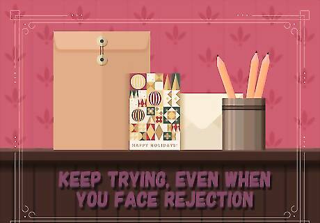 Keep trying, even when you face rejection. If you get denied by one greeting card company, move on to the next one. This is a business, so you can't take criticism personally. Don't be afraid to make changes suggested by editorial staff or other feedback they give you.