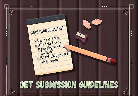 Get submission guidelines. Individual companies have specific guidelines for submitted artwork, including format, size, and medium. They will also have a specific address or person to send submissions to, which may be different than the person you contact for information. Make sure you are familiar with each company's guidelines before submitting something to them.