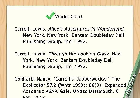 Create a bibliography. Depending on the assignment, you may write a works-cited page instead. Works-cited pages include those sources you specifically drew from. A bibliography can include other works that you are aware of, but did not reference in the body of your paper. In general, bibliographies should be organized by type of source and by alphabetical order.