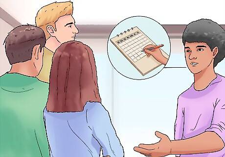 Find members for your group. Now that you have basic details, go find your cast! Think of anyone you may know that can sing, act, and/or dance and make a list to contact them. If you wish, you can also post on social media to see if anyone would be interested in joining. Be clear from the get-go about how you intend the group to work. If decisions are going to be collaborative, encourage your members to chime in and make choices together. This applies to all of the following steps, too. If you plan, instead, to run the show yourself, make sure the know that and are okay with it.