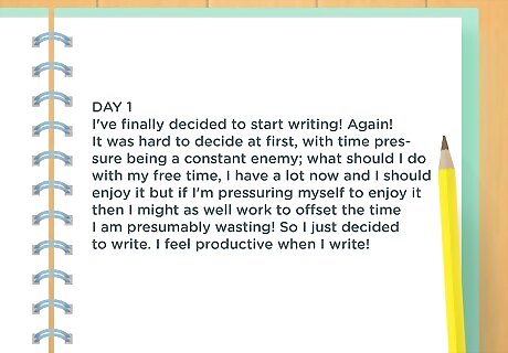 Remember to write in your notebook frequently. Although it’s exciting to start a new notebook, that excitement can quickly fade away. Set a schedule so that you remember to write—try writing every day, for example. If once a day is too often, plan to write two or three times during the week, or at least once a week. To get in the habit of writing frequently: Plan to sit down and write after you get home from school or work. Write first thing in the morning before you tackle responsibilities for the day. Write in bed at night, before you go to sleep. Find a time that works best for you when you are relaxed and undisturbed. This may vary on a day to day basis.